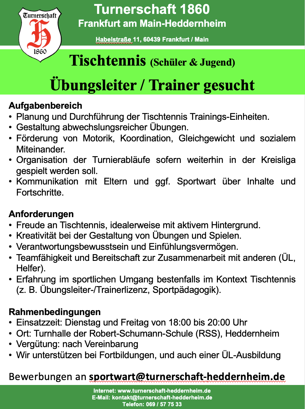 Tischtennis - Übungsleiter gesucht